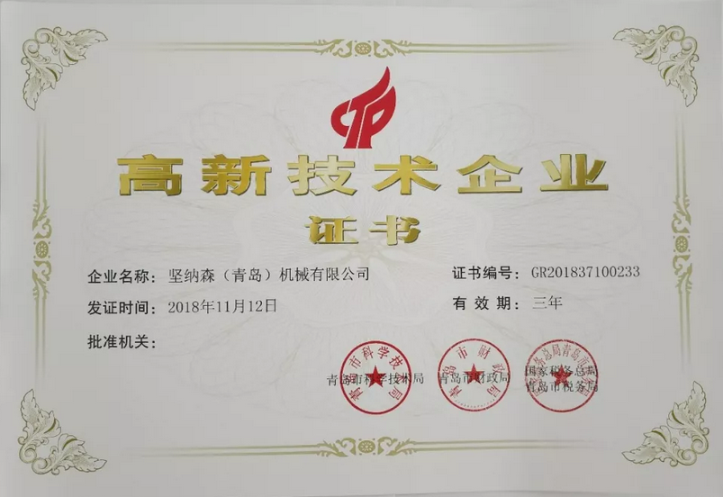 • 喜報-堅納森獲得《高新技術企業證書》